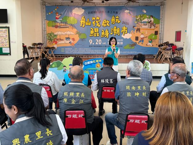 南區區長蕭琇華表示,區公所在地方觀光及特色發展不遺餘力,希望能夠發展出屬於南區的文化DNA,因此也努力整合既有資源能夠讓活動順利舉辦,今年度活動將以四鯤鯓碼頭與龍山寺為核心,匯集陸上與水上兩大主題市集,分別是「水上市集-漁人豐收筏」透過活化當地閒置舢筏,讓民眾可以搭乘觀光船登船購物,體驗獨特的「水上交易」樂趣以及「陸上市集-鯤鯓豐物市」在龍山寺前廣場集結特色品牌攤商與餐車,提供在地美食與文創商品,展現社區多元的活力。此外,活動內容也相當豐富多元,包含「潮汐共鳴音樂會」、結合地方地標的「鯤鯓尋秘定向越野」,以及可深入紅樹林秘境的「紅樹林生態觀光船導覽」。