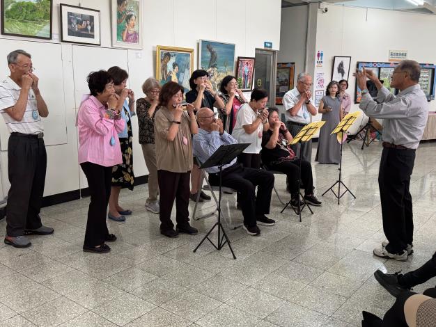 南區藝術空間(南區區公所)舉辦「鯤鯓長老教會牧鄰協會美術班」師生聯展,訂於11月14日上午10時開幕,並由據點歌唱班與陶笛班共襄盛舉,現場氣氛溫馨熱烈,此次展出作品為美術班洪國輝老師及學生們近年的創作藝術,繪畫作品包括素描、油畫、粉彩、水彩與複合媒材等多元且誇越世代視角之108幅作品,充分展現學員對藝術的熱愛與生活的美學體驗及創意能量。