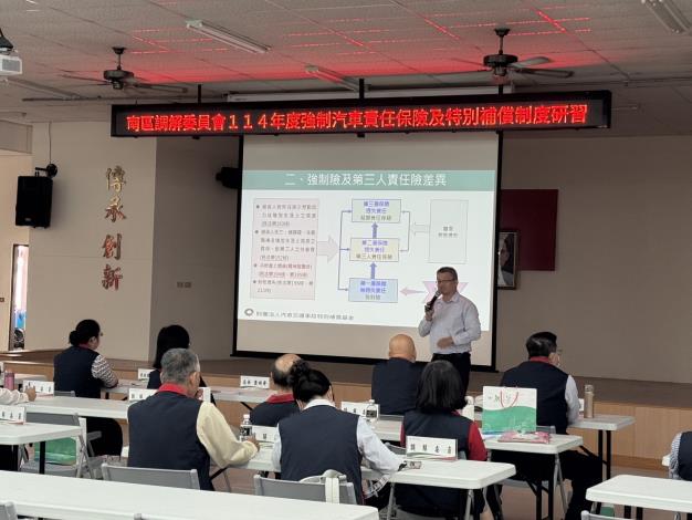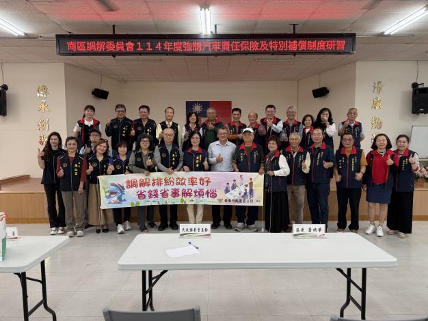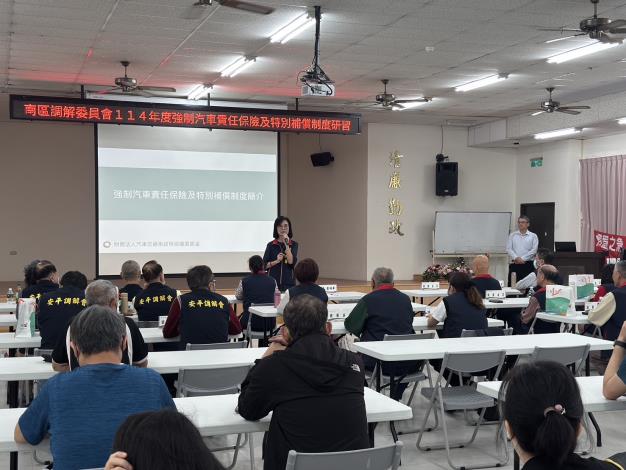 南區區公所今(26)日上午辦理調解委員會教育訓練,邀請財團法人交通事故特別補償基金會彭俊豪襄理講習強制汽車責任保險及特別補償制度,並分享實務上強制險調解爭議案例,本次研習邀請南區及安平區調解委員會委員共同參與,期透過研習提升調解服務品質及專業知能,並藉由互相分享及學習,精進調解專業能力。