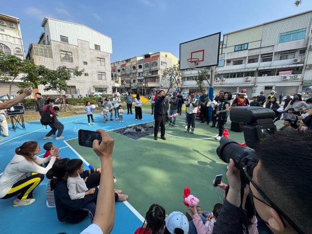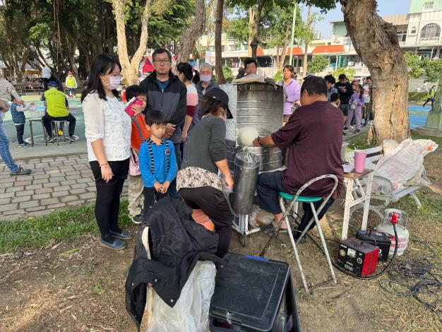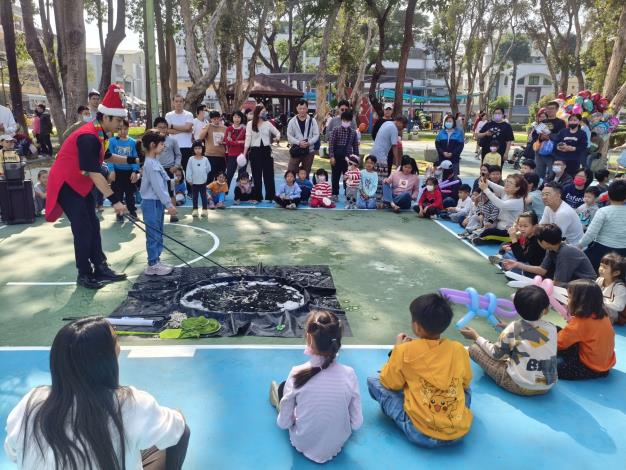 活動現場規劃多項適合親子共同參與的互動體驗,包括闖關遊戲、創意手作、氣球互動及泡泡體驗等,內容兼具趣味性與參與感。南區區公所也結合活動,設計以闖關遊戲方式進行交通安全、性別平等、公園遊具安全、全民督工、節約用水、防汛資訊及臺南市水情即時通APP等政策宣導,闖關完成還可獲得美食小吃兌換券及小禮物,讓孩子在遊戲中學習知識,家長也能透過陪伴與引導,增進親子互動與情感交流。活動當日適逢冬至,特別於現場發放湯圓與棉花糖,象徵團圓與祝福,讓活動更添節慶溫馨氛圍,深受大小朋友喜愛。